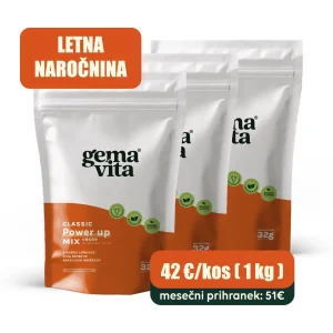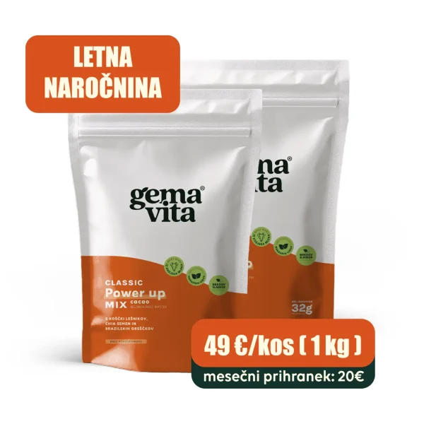 Power up MIX – Classic je beljakovinski obrok za hiter zajtrk ali malico. Sestavljen iz beljakovin kozje sirotke in dehidriranimi ter mletimi sestavinami, kot so kakav, oreščki, acerola, kokosova voda,… S širokim spektrom mikrohranil iz naravnih virov.
