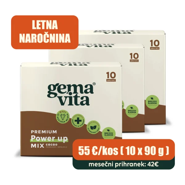 Power up MIX – Premium kot napredna kombinacija beljakovinskega obroka, namenjena podpori telesa po vadbi ali v obdobjih večjih fizičnih ali mentalnih obremenitev.